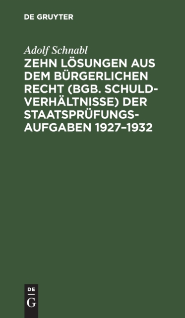 TITLE: Zehn Losungen Aus Dem Burgerlichen Recht (Bgb. Schuldverhaltnisse) Der Staatsprufungs-Aufgaben 1927-1932 : Nebst Anleitung