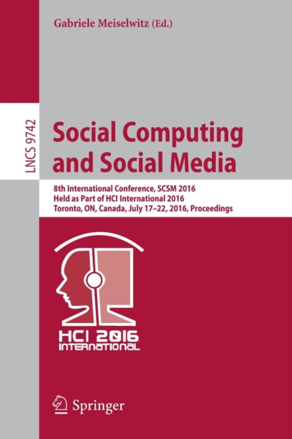 TITLE: Social Computing and Social Media : 8th International Conference, SCSM 2016, Held as Part of HCI International 2016, Toronto, ON, Canada, July 17???22, 2016. Proceedings : 9742