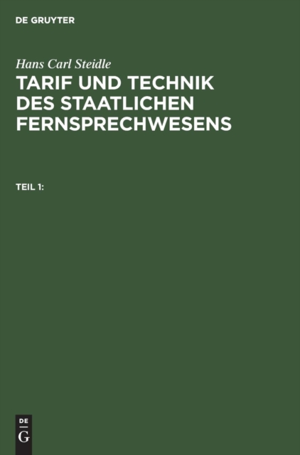 TITLE: Hans Carl Steidle: Tarif Und Technik Des Staatlichen Fernsprechwesens. Teil 1
