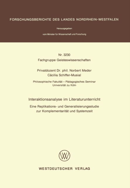 TITLE: Interaktionsanalyse im Literaturunterricht : Eine Replikations- und Generalisierungsstudie zur Komplementaritat und Systemzeit : 3230