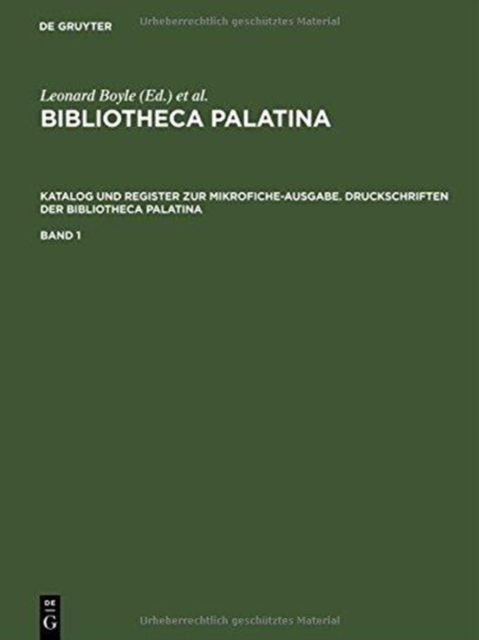 TITLE: Bibliotheca Palatina, Katalog und Register zur Mikrofiche-Ausgabe. Druckschriften der Bibliotheca Palatina