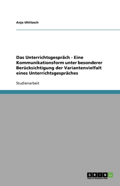 TITLE: Das Unterrichtsgesprach - Eine Kommunikationsform unter besonderer Berucksichtigung der Variantenvielfalt eines Unterrichtsgespraches