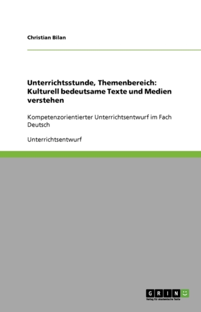 TITLE: Unterrichtsstunde, Themenbereich : Kulturell bedeutsame Texte und Medien verstehen: Kompetenzorientierter Unterrichtsentwurf im Fach Deutsch