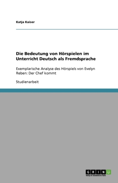 TITLE: Die Bedeutung von Hoerspielen im Unterricht Deutsch als Fremdsprache : Exemplarische Analyse des Hoerspiels von Evelyn Reben: Der Chef kommt