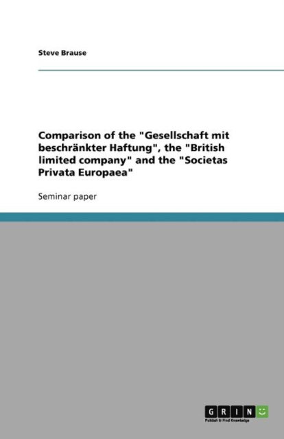 TITLE: Comparison of the Gesellschaft mit beschrankter Haftung, the British limited company and the Societas Privata Europaea