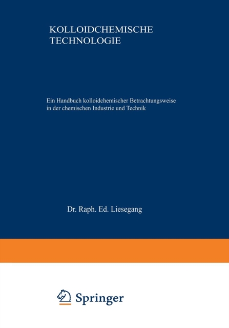 TITLE: Kolloidchemische Technologie : Ein Handbuch kolloidchemischer Betrachtungsweise in der chemischen Industrie und Technik