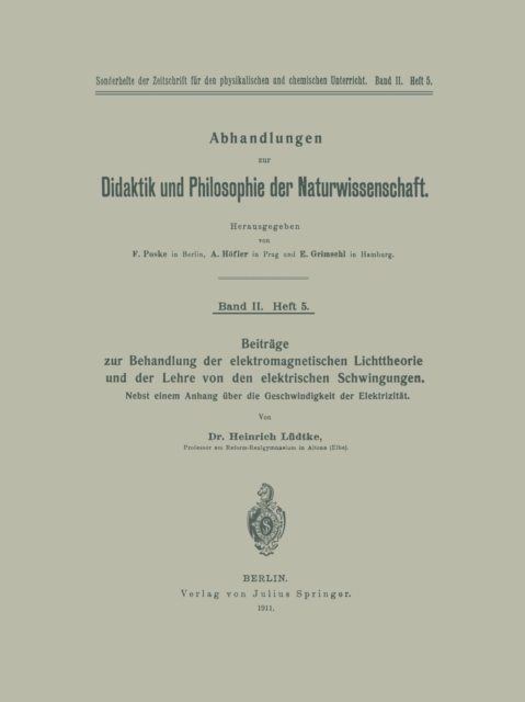 TITLE: Beitrage zur Behandlung der elektromagnetischen Lichttheorie und der Lehre von den elektrischen Schwingungen : Nebst einem Anhang uber die Geschwindigkeit der Elektrizitat : 5
