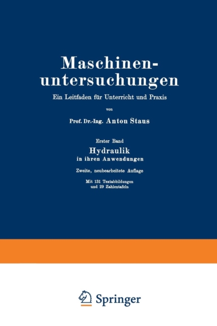 TITLE: Maschinenuntersuchungen : Ein Leitfaden fur Unterricht und Praxis Erster Band Hydraulik in ihren Anwendungen