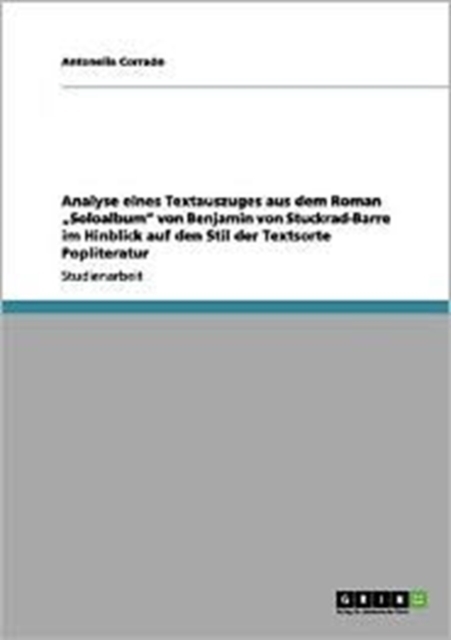 TITLE: Analyse Eines Textauszuges Aus Dem Roman Soloalbum Von Benjamin Von Stuckrad-Barre Im Hinblick Auf Den Stil Der Textsorte Popliteratur