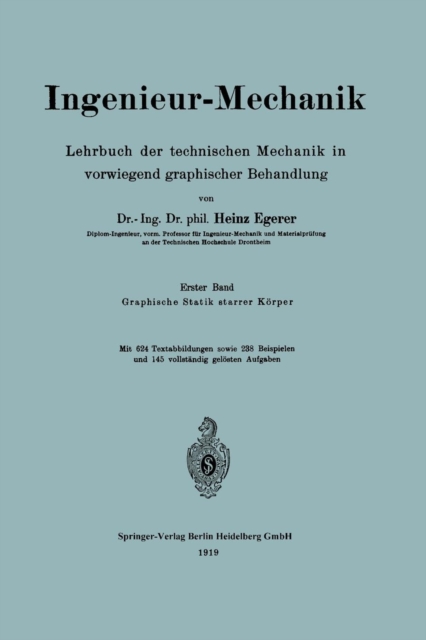 TITLE: Ingenieur-Mechanik : Lehrbuch der technischen Mechanik in vorwiegend graphischer Behandlung Erster Band Graphische Statik starrer Koerper