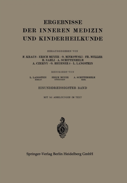 ISBN: 9783642887956TITLE: Ergebnisse der Inneren Medizin und Kinderheilkunde : Sechsunddreissigster …