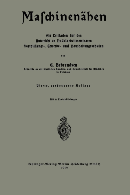 TITLE: Maschinenahen : Ein Leitfaden fur den Unterricht an Nadelarbeitsseminaren Fortbildungs-, Gewerbe- und Haushaltungsschulen