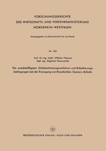TITLE: Die zweckmassigsten Gutebestimmungsverfahren und Brikettierungs-bedingungen bei der Erzeugung von Braunkohlen-Eisenerz-Briketts : 343