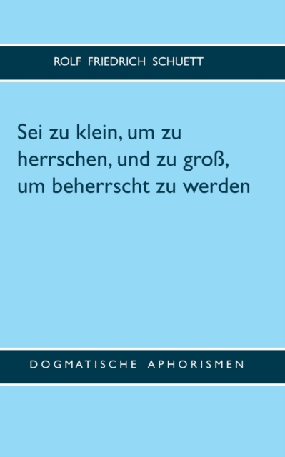 TITLE: Sei zu klein, um zu herrschen, und zu gross, um beherrscht zu werden : Dogmatische Aphorismen
