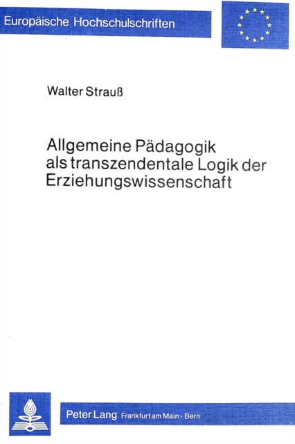 TITLE: Allgemeine Paedagogik als transzendentale Logik der Erziehungswissenschaft : Studien zum Verhaeltnis von Philosophie und Paedagogik im Anschluss an Kant