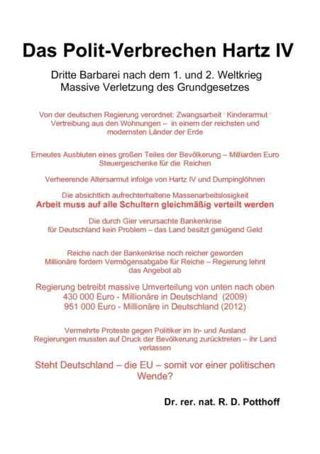 TITLE: Das Polit-Verbrechen Hartz IV : Dritte Barbarei nach dem 1. und 2. Weltkrieg. Massive Verletzung des Grundgesetzes