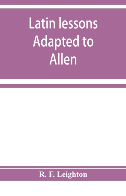 ISBN: 9783382138684TITLE: Latin Lessons Adapted to Allen and Greenough's Latin GrammarAUTHOR: R F Le…