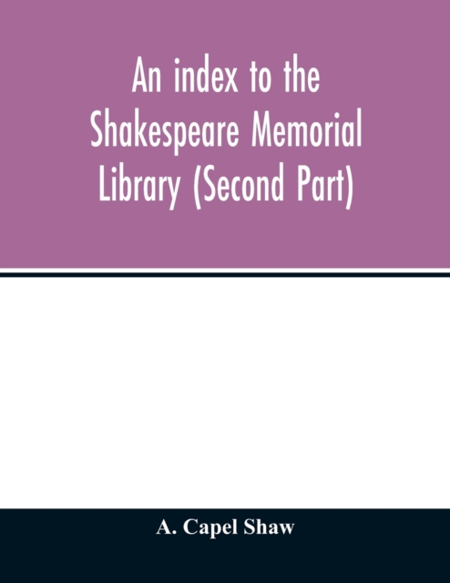 TITLE: An index to the Shakespeare Memorial Library (Second Part)