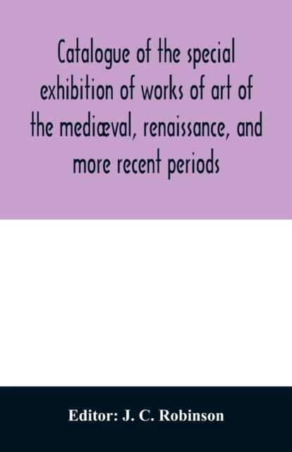 TITLE: Catalogue of the special exhibition of works of art of the mediaeval, renaissance, and more recent periods : on loan at the South Kensington museum, June 1862