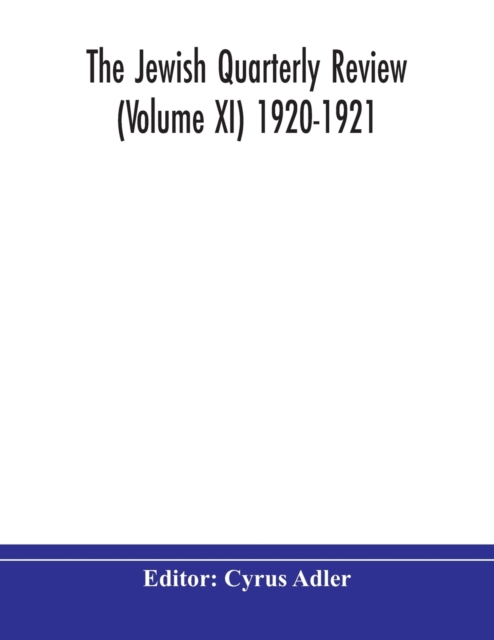 TITLE: The Jewish quarterly review (Volume XI) 1920-1921