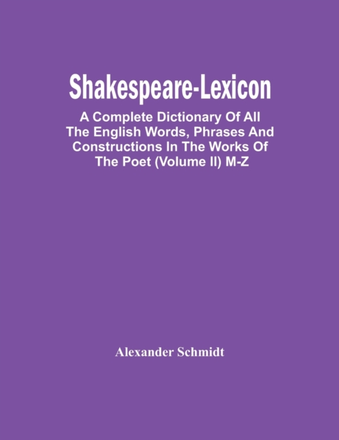 TITLE: Shakespeare-Lexicon : A Complete Dictionary Of All The English Words, Phrases And Constructions In The Works Of The Poet (Volume Ii) M-Z