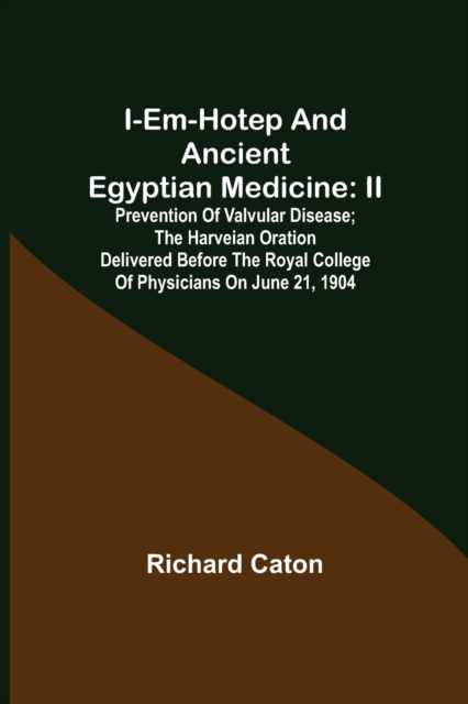 TITLE: I-em-hotep and Ancient Egyptian medicine : II. Prevention of valvular disease; The Harveian Oration delivered before the Royal college of physicians on June 21, 1904