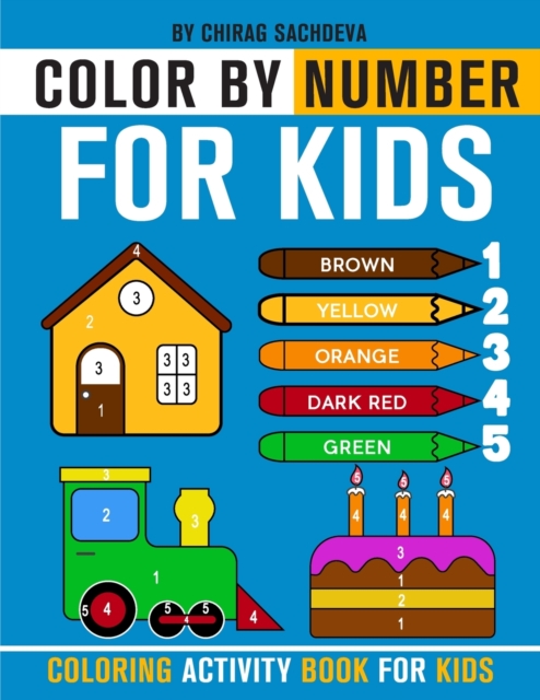 TITLE: Color By Number for Kids : Coloring Activity Book for Kids: Childrens Coloring Book with 1-5 number color pallet and 28 different things to color with names. Large Pages (kids coloring books ages 3-5